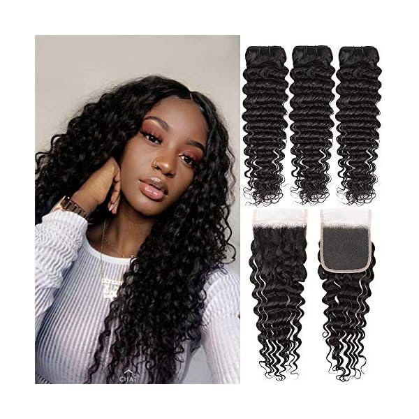Deep Wave Bundles With Closure Human Hair 3 Bundles With Lace Closure 100 Unprocessed 4 4 Free Part Lace Mixed Length Weave Hair And Bundles Human Hair Extensions Natural Black Color Ccollege Hair